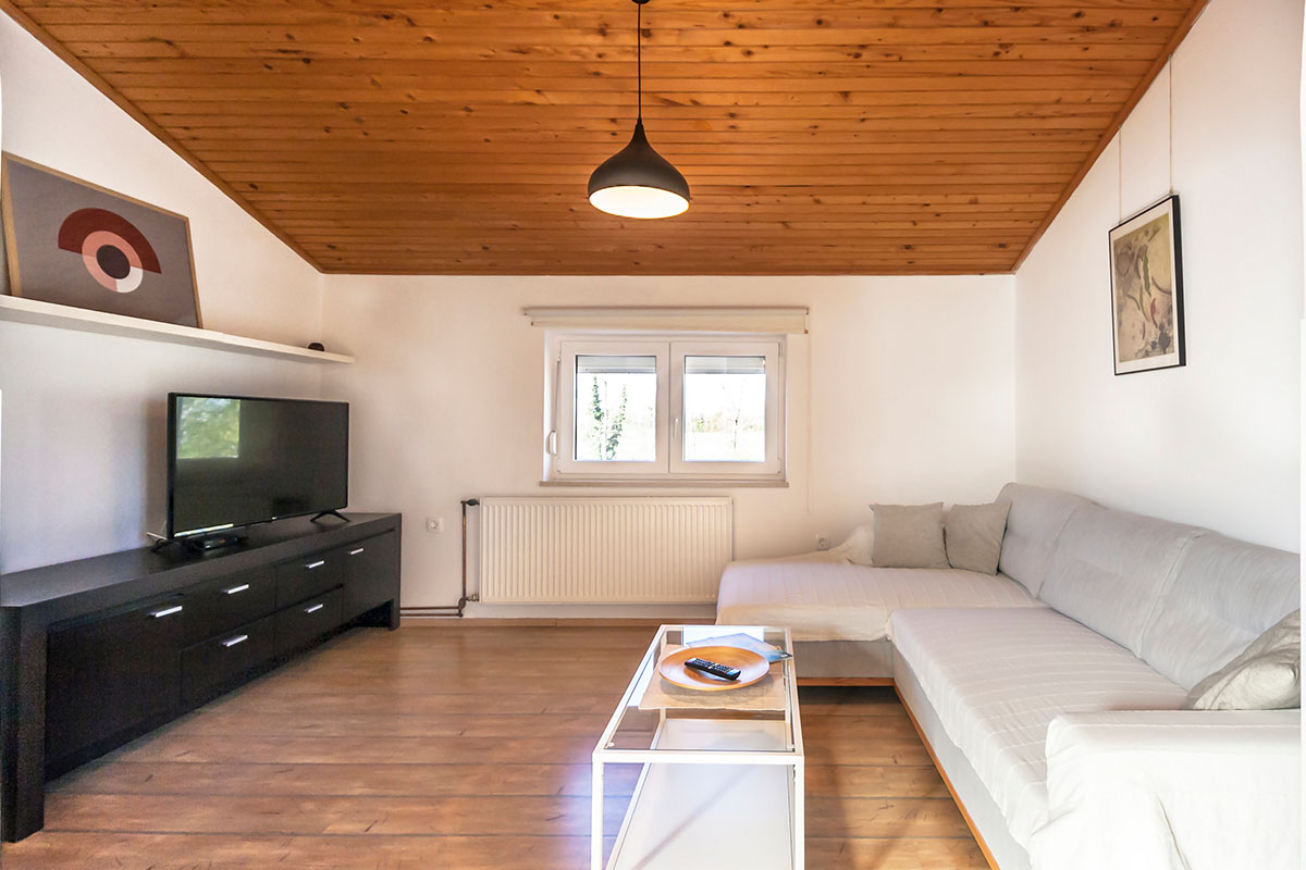Nearby seacoast is not so overpopulated in Summer, there are many beaches with pebbles, rocks, and a lot of hidden (harder to get) little bays accessible with goat trails. There's no official FKK beaches, or pet beaches, but there's plenty of space to go swimming with dogs. The Sea is crystal clean, and warm in Summer months.